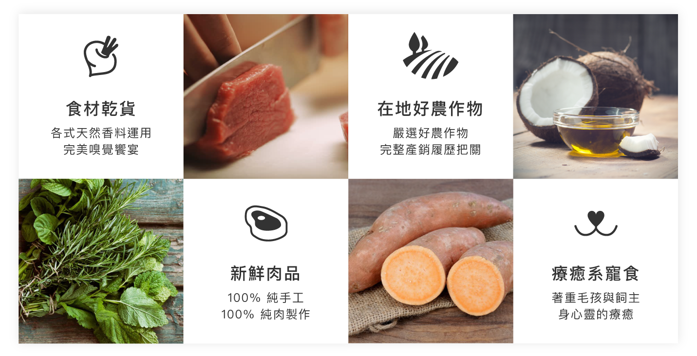 從食材開發到產品包裝,逐步思考不只對毛孩友善,更是對地球友善的方式,創造人、毛孩與地球永續共好的生活環境。