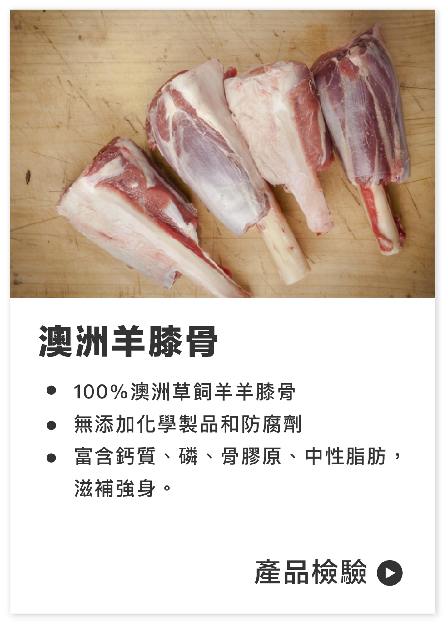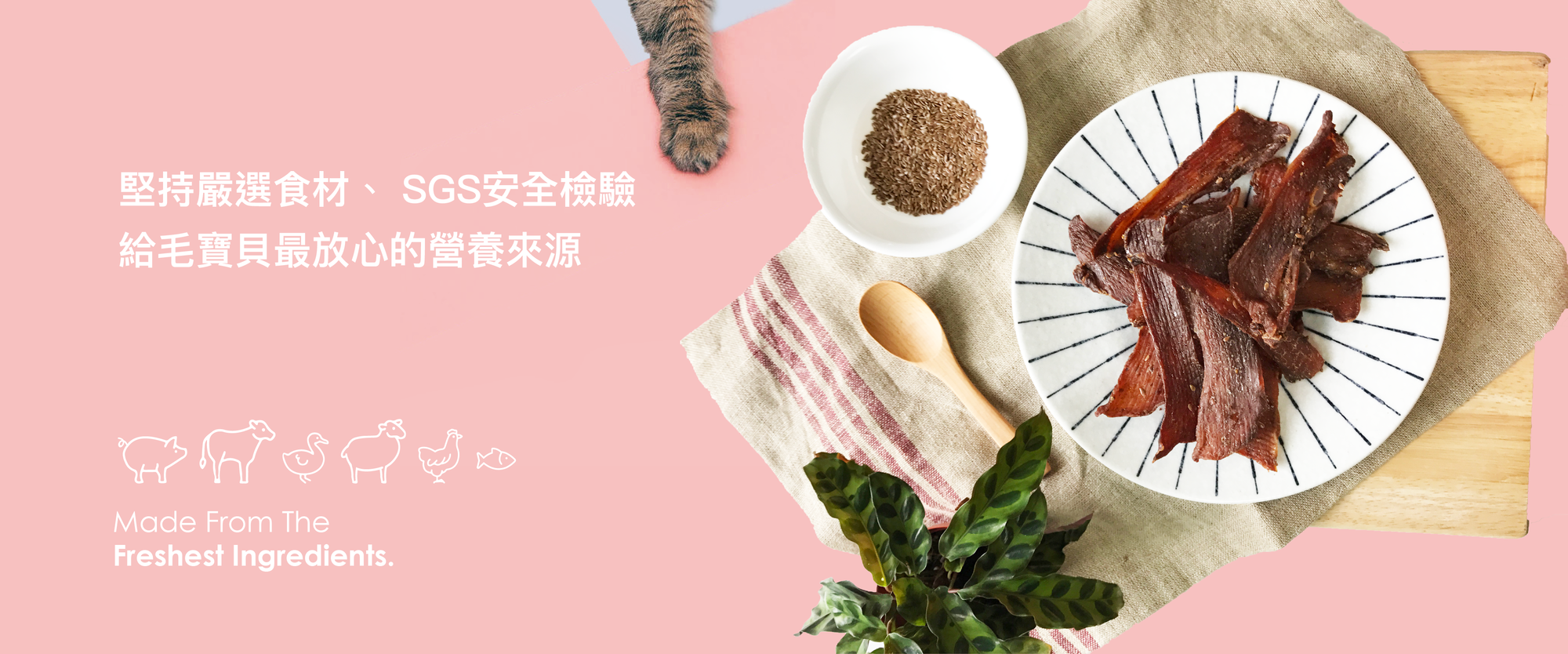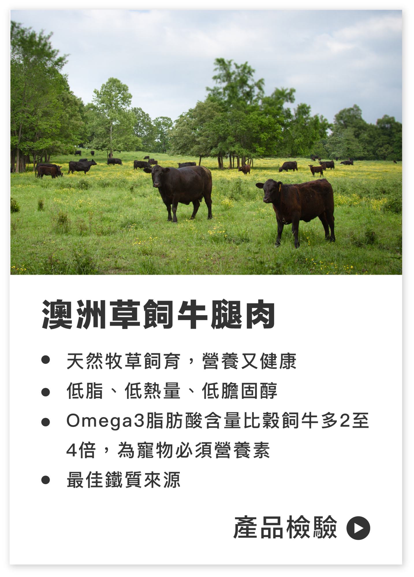 採用SGS檢驗合格之肉品,僅選擇低脂完整後腿肉塊,提供毛孩最優質的蛋白質來源