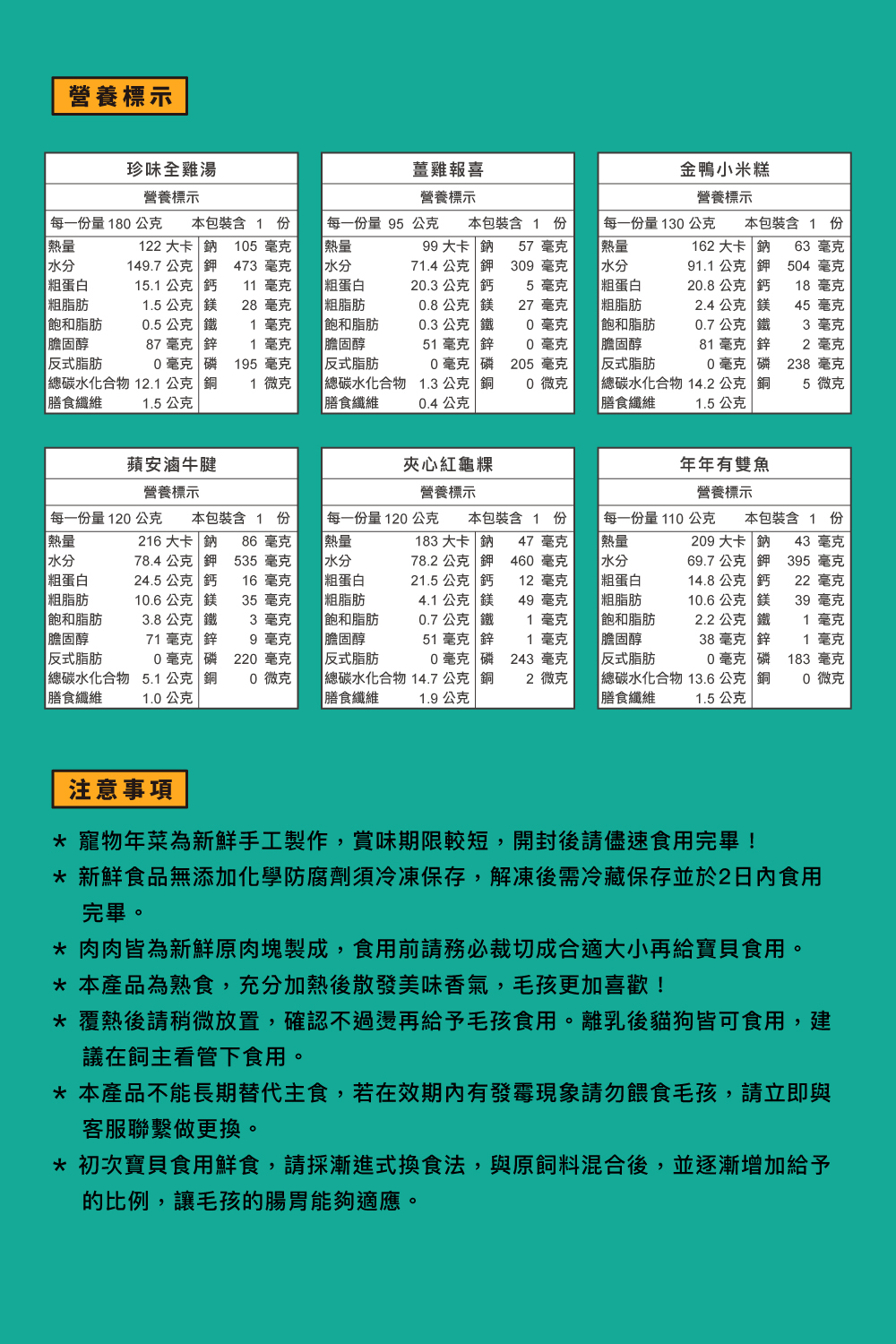 • 寵物年菜為新鮮手工製作,賞味期限較短,開封後請儘速食用完畢!